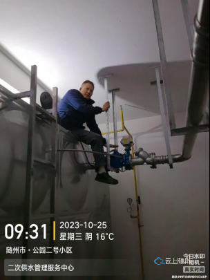 公園二號(hào)小區(qū)業(yè)主及物業(yè)向供水公司客服熱線(xiàn)反映家中水壓較低,出水量不穩(wěn)定,用水高峰時(shí)甚至?xí)霈F(xiàn)停水情況,嚴(yán)重影響正常生活用水。為了解決居民用水缺水缺壓?jiǎn)栴},二次供水管理服務(wù)中心立即安排工作人員到該小區(qū)排除故障。