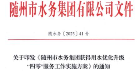2.關(guān)于印發(fā)《隨州市水務(wù)集團(tuán)獲得用水優(yōu)化升級(jí)四零服務(wù)工作實(shí)施方案》的通知