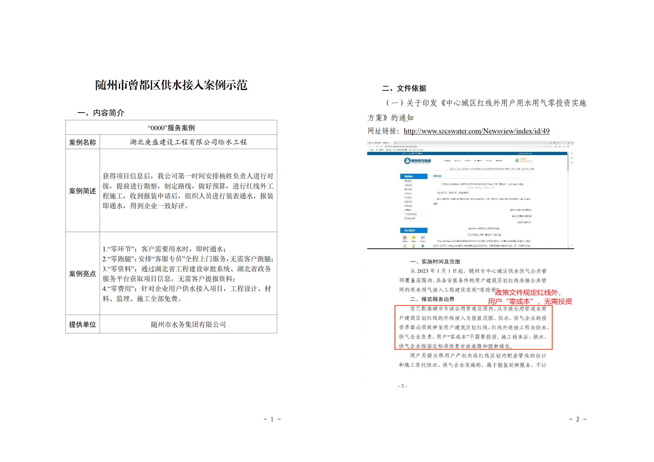 下面展示隨州市、曾都區(qū)、高新區(qū)、隨縣地區(qū)供水接入案例示范資料。