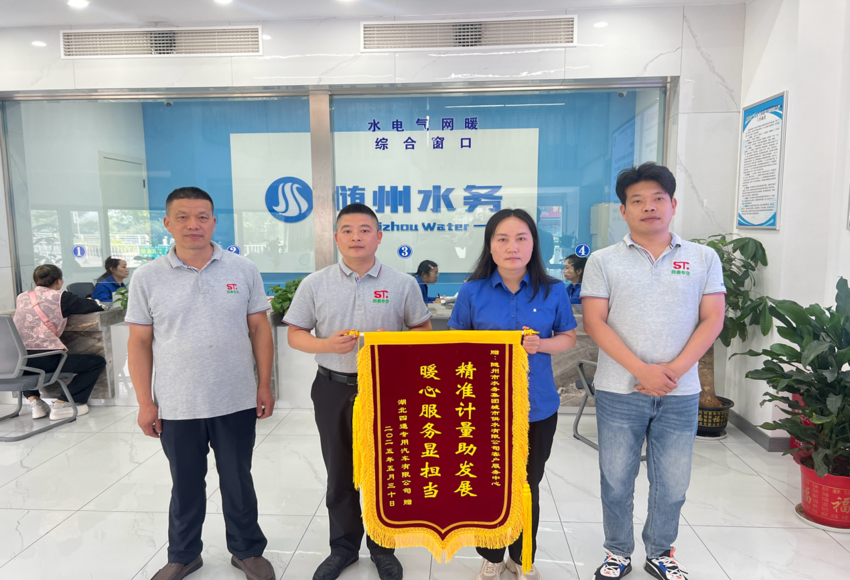 “精準(zhǔn)計(jì)量助發(fā)展,暖心服務(wù)顯擔(dān)當(dāng)”,6月5日,一面鮮紅的錦旗被鄭重地送到隨州市水務(wù)集團(tuán)城市供水有限公司客戶服務(wù)中心。湖北四通專(zhuān)用汽車(chē)有限公司總經(jīng)理帶隊(duì)專(zhuān)程致謝,對(duì)公司免費(fèi)提供的水表檢定服務(wù)給予高度贊揚(yáng),表達(dá)誠(chéng)摯謝意。這面錦旗不僅是企業(yè)對(duì)隨州水務(wù)優(yōu)質(zhì)服務(wù)的認(rèn)可,更是隨州水務(wù)以 “五免五心” 惠企政策為企業(yè)發(fā)展助力的生動(dòng)體現(xiàn)。