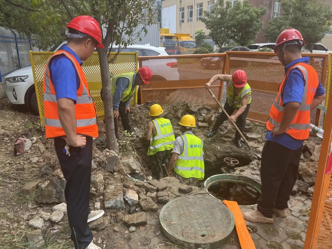 7月6日上午,客服人員接到群眾的熱線電話,清河路清河庭院附近路面大量跑水,運維中心搶修人員十五分鐘到達現(xiàn)場,通過路面積水判斷為DN400主管道爆破,測漏人員立即精準定位漏點,關(guān)閉次處的管道會直接影響周邊黃龍五隊、清河庭院、東方小區(qū)、楚苑小區(qū)、雙橋家具大市場等,導(dǎo)致小區(qū)和企業(yè)大面積的水壓不足甚至停水??崾铍y耐,為減少管網(wǎng)爆裂等突發(fā)事件給居民帶來的用水影響,維修人員在35°的高溫下連續(xù)奮戰(zhàn)8小時,當晚7點半就完成維修恢復(fù)正常供水。